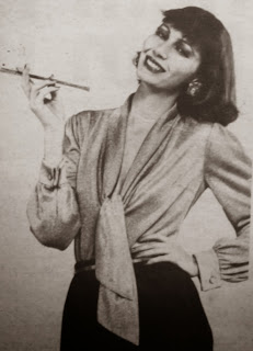 Kollar bol ve geniş. Manşetler düğmeyle iliklenmekte. Simli bluzun altına giyilen siyah etek dar ve düz. Bele ince ve parlak kemer takılması ayrı bir özellik...1975