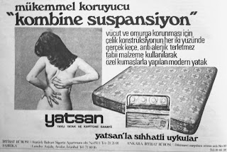 Mükemmel koruyucu "Kombine süspansiyon" Vücut ve omurga korunması için çelik konstrüksiyonun her iki yüzünde gerçek keçe. Anti-alerjik terletmez tabii malzeme kullanılarak özel kumaşlarla yapılan modern yatak. Yatsan'la sıhhatli uykular Yatsan yaylı yatak ve kapitone sanayi...1975 |