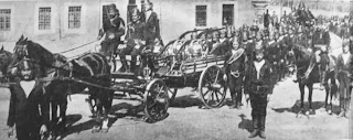 1904 yılında yangını naralar atarak çevreye duyurmak ve tulumbalarını kaptıklarını gibi olanca hızlarıyla yangına ulaşmaya çalışan tulumbacılar bir yangına giderlerken.... 1923 yılı Büyükdere tulumbacılarının hatıra fotoğrafı. (Turkish fire brigade, Buyuk-dere) İtfaiye teşkilatı bir yangına müdahale esnasında. |