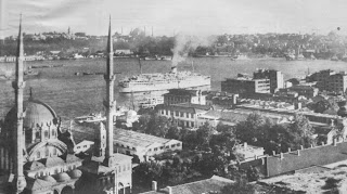 Karşıda Sarayburnu, önde Tophane kıyısı ve Nusretiye cami... "Ankara" kim bilir kaçıncı kere çıktığı bir Akdeniz seferinden dönerken görülmekte. 1977 |