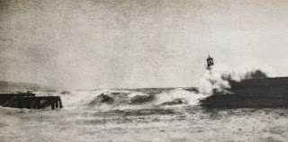 Işıklar Söndü Bazı güney memleketleri normal bir sonbahar geçirirken kuzeyde şiddetli fırtınalar hüküm sürmekte ve deniz adeta kışı hatırlatan bir savletle kıyıları döverken, gök gürültüsünü andıran bir şiddetle mendireklerde ve liman ağızlarında patlamaktadır. Geçenlerde böyle bir fırtına esnasında İrlanda'nın Bray limanı mendireğindeki beton direklerden biri çökmüş ve mendireğin burnundaki fener yıkılmıştır. Yukarıdaki fotoğraf fener yıkılmadan birkaç saniye önce çekilmiştir. Fener otomatik olduğu ve içinde kimse olmadığı için insan kaybı olmamıştır... (1957) |
