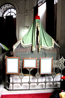 Osmanlı sultanı sultan ikinci Abdülhamid'in İstanbul Fatih ilçesi Divanyolu caddesi üzerinde yer alan 2. Mahmud türbesinde bulunan sandukası... Sultan 2. Abdülhamid hanın sandukasının üzerinde yer alan puşidede (örtüde) yer alan yazılar : Kadife kumaş üzerine sırma ile celi - sülüs Osmanlıca şu ibareler yazmaktadır : Sanduka baş kısım Hüve'l Hallaku'l baki Cennet mekan el gazi sultan Abdülhamid han - ı Sani bin es sultan el gazi Abdülmecid han hazretleri Veladetleri 16 şa'banü'l - muazzam sene 1258 (9 (22) eylül 1842) Cülus - i hümayunları : 11 şa'banü'l muazzam sene 1293 (19 ağustos 1878) irtihalleri : 28 H. ahir sene 1332 (10 şubat 1918) Müddet - i saltanatları : 33 sene 7 ay 26 gün Sanduka kapağı üstünde yer alan yazı Es - salatü ve's selamü aleyke ya şefia'l müznibin La ilahe illallah Muhammedün Resullullah Demir korkuluklarda bulunan yazı : Esma'ül hüsna'dan (Allah'ın 99 adı) 10 tane isim yazılıdır. Ya tevvab, ya muhib, ya latif, ya mahman ya rahim, ya settar, ya muğnis, ya gafur, ya fettah, ya kerim... |