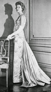 Haftanın Balo Elbisesi Bal rengi saten düşesten ve çok zengin olarak hazırlanmıştır. Arkada, belin aşağısından çıkan drape yere kadar geniş bir kuyruk şeklinde uzanmaktadır. Elbise yukarıdan aşağıya kadar simle işlenmiştir. Bu işler Türk motifleri ile yapılırsa elbiseye çok daha şahane bir hava verir. Balo elbiselerinde Türk motiflerinin kullanılması büyük bir alaka ile karşılanmaktadır. Bunun bir teamül halini alması en başta gelen dileğimizdir. (Worth Londra 1957) |