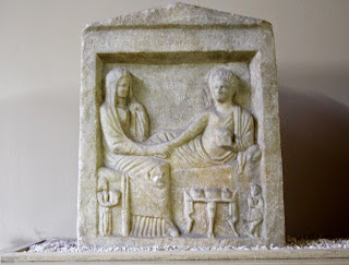 Cenaze şöleni symposium konulu mezar taşı Mermer, İstanbul Laleli'den Helenistik dönem 2. yüzyıla ait Sosias oğlu Naksos veda ederken gösterilmiştir. Gravestone with symposium scene Naksos, son of Socias is shown bidding farewell Marble Hellenistic time 2 nd century Laleli, Constantinople |