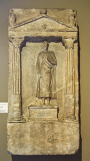 Dionysios'un mezar steli Kireç taşı, Sidon (Sayda, Lübnan)'dan. Erken Roma dönemine ait Yazıt : Ey mevsimsiz ölen iyi insan Dionysios, elveda !" Grave stele of Dionysios Limestone, Sidon (Sayda, Lebanon) Early Roman time period "Hail good man Dionysios who has died untimely, farewell." İstanbul Arkeoloji Müzesi |