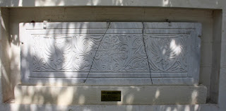 'nden nakil olunan geç Bizans dönemi 10. - 12. yüzyıllara ait haçlı ve armalı mezar taşı örneği.