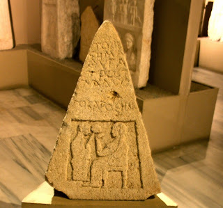 Piramit biçimli mezar steli - Pyramidai grave stele Kireçtaşı Sinope (Sinop) Arkaik dönem İ. Ö. 5. yüzyılın ikinci çeyreği "Karia'lı Nadüs'ün kızının anıtıyım. Bakir gençliğin çiçeğini terk edip, tek çocukken babasından ayrılmasıyla dikildi... İstanbul Arkeoloji Müzesi |