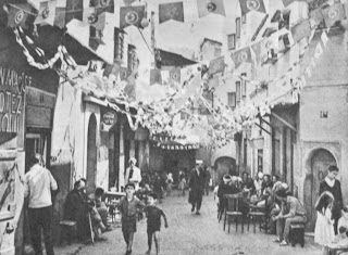 Afrika'da yeni bir bağımsız devlet : Cezayir Üstte bayraklarla donanmış sokaklarda yüzlerinde sevinç ifadesi okunan halk, altta da sevinçle gazete okuyan bir Cezayirli görülmektedir. |