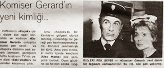 Bizleri pek sevdi Komiseri Gerard yeni dizide bir teğmeni canlandırıyor. Bu rol ona pek yakışmış... Komiser Gerard'ın yeni kimliği... Haftalarca "Kaçak" adlı dizide bizi epey korkutan ve kızdıran "Komiser Gerard" anlaşılan bizleri pek sevdi... Ve "Kaçak" dizisinin asık suratlı komiseri, geçtiğimiz hafta başlayan Tv'nin yeni dizisi "Eski dostlar"da yeniden karşımıza çıktı. Onu "Kaçak"ta Dr. Kimble'ın gölgesi olarak tanımış, yüklendiği rol gereği pek benimseyememiştik. Kanımız ısınmamıştı bir türlü. Ama yeni dizideki kalıbı içinde kendisini (Alec Morse) pek sempatik bulduk. Oyun gücüne de hayran kaldık doğrusunu isterseniz... 1975 |