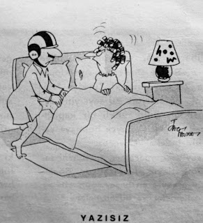 Kaskını takarak yatağa girmeden evvel işini sağlama alan temkinli bir koca örneği...
