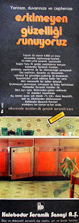 Yerinize, duvarınıza, cephenize eskimeyen güzelliği sunuyoruz. Yapılar ilk olarak 6.000 yıl önce seramikle kaplanmaya başladı. Ve 6.000 yıllık seramik kaplamalar bugün hala ilk günkü yeniliklerini koruyor. Kalebodur seramik karoları günümüz yapılarına da bu ölümsüzlüğü aşılayacak. Dış cepheler, duvarlar ve döşemeler eskimez bir güzelliğin aydınlığı ile donanacak. İş yerinizden yatak odanıza kadar her yere dört mevsimlik bir bahar dolacak. Çizilmeyen, aşınmayan, solmayan ve kolay temizlenen kalebodur seramik karoları ile. Dört ayrı tipte, birbirinden çekici renklerde ve standart boyutlarda. Su emme oranı çok düşük = % 2.6, dona dayanıklı, asit ve alkalilerden etkilenmeyen kalebodur seramik karoları aradığınız her zaman ve her yerde. Ülkemizde üretilen ilk gerçek seramik karo Kalebodur Seramik Sanayi A. Ş. Düz ve dekoratif seramik dış cephe, yer ve duvar karoları...1975 |