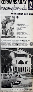 Kervansaray mocamplarında en iyi günler sizin olsun. Kamplarımızda çadır ve aracınızla kamp yapabilir ayrıca Kuşadası ve kız kalesindeki mevcut odalarda denizin ve kampçılığın tadını çıkarabilirsiniz. * Edirne mocamp * İpsala mocamp * Kartaltepe (İstanbul) mocamp * Kumluk (Bursa) mocamp * İnciraltı (İzmir) mocamp * Kuşadası mocamp * Kız kalesi (Silifke) mocamp * Susuzköy (Ankara) mocamp * Alanya mocamp * Göreme mocamp Kervansaray A. Ş. Cumhuriyet cad. Ege Han Harbiye İstanbul (1975) |