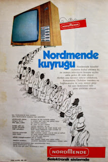 Nordmende Kuyruğu Nordmende kendini öylesine kabul ettirmiş ki, ne zaman televizyon konusu açılsa akla gelen ilk isim oluyor. Herkes onu tavsiye ediyor ahbabına, komşusuna. Öylesine inanmış ve bağlanmışlar ki ona, sıraya girip bir süre beklemeyi bile göze aldıkları oluyor... Nordmende selektronik sistemde... 1975 |