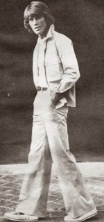 Göğüs üzerinde yer alan ve iki düğmeyle kapanan kapaklı büyük cep Richard Savera'nın hazırladığı takımın özelliğini teşkil etmektedir. Gömlek tipi dakron ceketin altına giyilen pantolon yine aynı kumaştandır. Ceketin yandan yırtmaçlı oluşu yaz ayları için oldukça rahat ve kullanışlı. Takımın içine beyaz tişört giyilmektedir... 1975 |
