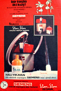 Bir taşla iki kuş ! İki elektrik süpürgesi birden ister misiniz ? Biri 100 yıllık tecrübenin ürünü Siemens elektrik süpürgesi öteki bedava Simtel'in armağanıdır. Sim-sim minyatür süpürge kumbara Halı yıkayan tek elektrik süpürgesi Siemens'inizi şimdi alınız. 1 şubat'tan itibaren Simtel elektrik süpürgesi alan herkese sim-sim bedava ! Simtel ticaret ve sanayi a. ş. İstiklal caddesi no 347 Beyoğlu - İstanbul (1975) |