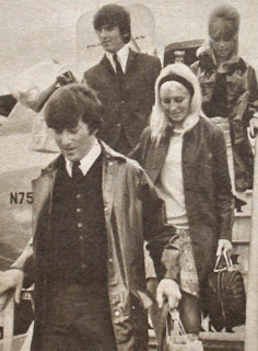 Los Angeles'a gittiler ve döndüler ! Dünya gençliğinin 1 numaralı sevgilisi haline gelen The Beatles topluluğunun üyeleri Los Angeles'teki turnelerini tamamlayarak Londra'ya dönmüşlerdir. Güneşten yanmış tenleriyle uçaktan inen "Ye ! Ye !"ciler, çantalarının çeşitli deniz dolduğunu ifade etmişlerdir. Resimde Beatles'lerden John ve eşi Cynthia, George ve kız arkadaşı sarışın Patti Boyd ile uçaktan inerken görülmektedirler...1964 |