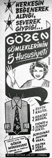 Herkesin beğenerek aldığı, severek aldığı Gözen gömleklerinin 5 hususiyeti 1- Üstün kalite 2- Hakiki beden 3- Temiz ve itinalı dikiş 4- Buruşmaz sanfor yaka 5- Daima yeni model TOPTAN SATIŞ YERİ GÖZEN MÜESSESESİ GÖMLEK VE ITRİYAT DEPOSU Büyük postane caddesi 5/1 İstanbul (1957) |