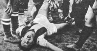 MİLLİ LİG MAÇLARI SERT BAŞLADI ! Yeni başlayan milli lig maçları oldukça sert ve çetin geçiyor. Bilhassa küçük takımlar müdafaaya ehemmiyet vererek bir puan almak için mücadele etmektedirler. Bu sıkışık oyun neticesinde bir tarafın gol atmak istemesi, diğer takımın gol yememek için sarf ettiği enerji oyunları sertleştiriyor. Yer yer sakatlıklar oluyor. Futbolcuların bu mücadeleye dayanmaları elbetteki güçtür. Bilhassa yağmurlu, karlı, soğuk havalarda, çamurlu sahada sakatlıklar çoğalabilir. Geçen sene de şampiyonluk ve küme düşmemek için kulüplerin mücadelesi bir hayli sert geçmişti. Fotoğrafta bir maçta sakatlanan Galatasaraylı Tarık Kutver yerde kıvranırken görülmektedir. Bu sene temennimiz bu gibi sahnelerin daha az tekerrür etmesidir...1963 |