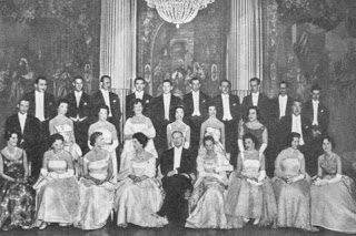 Prenses Margaret, Antony Armstrong Jones ile evlenebilmek için üstte görülen 11 prens adayından vazgeçti ! Üstte bu 11 prensi İsveç kral ve kraliçesinin Stockholm'de verdikleri bir baloda görmektesiniz. Orta sıra soldan sağa : Norveç veliaht prensi Harald, İsveç prensesi Bertil. Arka sıra soldan sağa : Hohenlohe - Langenburg prensi Kraft, Hesse prensi Karl, Bavyera prensi Maximilian, yunan veliaht prensi Constantine, eski Bulgar kralı Simeon, Kent dükü, Hesse prensi Maurice, Baden prensi Ludwig, Saxe - Coburg Gotha prensi Friedrich ve Toerring - Jettenbach kontu Hans. Ön sırada ise Yunan kraliçesi Frederika ile İsveç kralı ve kraliçesi görülmektedir. Diğer görülenler de bekar prensesler. Lakin prenses Margaret ise gönlünün prensini bu 11 hakiki prense tercih etmiştir...1960 |