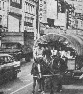 KOVBOY FİLMLERİNDEN FIRLAMIŞ GİBİ... Geçenlerde, Broadway'in kalabalık caddelerinden birinde trafiğin en sıkışık olduğu esnada, üzeri kapalı bir göçmen arabası dikkatleri çekti. Gezgin Leon Gillis, karısı ve altı çocuğu ile beraber bu arabayla 1961 yılından beri dünya turu yapmaktadırlar... |