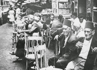 Lübnan'ın klasik görünümlerinden biri... Öğle sıcağında fesli Lübnan efendileri sokak kahvelerinde oturup nargilelerini içer ve koyu sohbetlere dalarlar... |