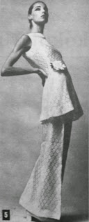 Kapalı yakalı, vücudu saran uzun tunik yapma çiçekle süslenmiştir. Paçaları bileklere doğru bollaşan pantolon dubledir. Bu şık model