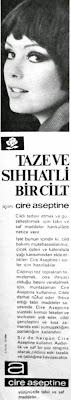 TAZE VE SIHHATLİ BİR CİLT için Cire Aseptine Cildi tedavi etmek ve güzelleştirmek için tabii ve saf maddeler harikulade netice verir. İşte bunun içindir ki, cilt bakımı mütehassıslarımız çiçek özleri ve kalendula yağı karışımından elde ettikleri Cire Aseptine'i sizler için hazırladılar. Cildinizi toz topraktan temizlemek, ona ihtiyacı olduğu besini verebilmek için muntazam Cire Aseptine kullanınız. Cilde derhal nüfuz eder. İhtiva ettiği tabii maddeler sayesinde Cire Aseptine yüzdeki kırmızı lekeleri ve sivilceleri yok eder, cildi gençleştirir ve kısa zamanda eski yumuşaklığını, parlaklığını kazandırır. Siz de her gün Cire Aseptine kullanın. Aydınlık ve saf bir yüz renginiz olacak, cildiniz eksi tazelik ve tatlılığına kavuşacaktır... a Cire Aseptine Yüzünüzde tabi ve saf maddeler... (1972) |