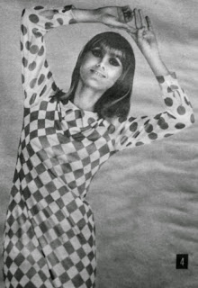 küçük kapalı yakaya sahip, uzun kollu ve geometrik desenli şık bir yazlık elbise modeli...1966