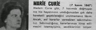 MARIE CURIE (7 Kasım 1867) Madam Curie gibi 7 kasımda doğmuşsanız his hayatınızın umduğunuzdan çok daha hareketli geçebileceğini unutmamanız lazım. Ancak, ani kararlar vermekten sakınmalısınız. Sabırsızlığınız, kararlarınıza itiraz edilmesini istemeyişiniz sevdiklerinizi üzüyor... |
