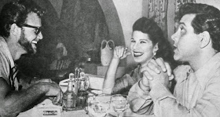 Arrivederci Roma Andrea Doria transatlantiği'nin batması üzerine şöhret yapan şarkının nihayet filmi de çevrilmekte... Bu müzikal kordelenin baş rolünü resimde karısı ile beraber görülen Mario Lanza oynamaktadır. Ünlü tenor burada da şarkı söylemekte...1957 |