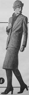 Bu sene sonbahar ve kış aylarında klasik İngiliz tipi tayyörler pek revaçta. BOL HATLARIN YANINDA DAR ÇİZGİLERDE VAR Nina Ricci'nin dar hatlar taşıyan balıksırtı desenli yünlü tüvit tayyörü aynı kumaştan şapkasıyla takım teşkil etmekte. Tüp havasını yansıtan modelin ceketi iki düğmeyle kapanmakta. Tayyörün içine kol bitimleri ve yakası fırfırlı ve büzgülü beyaz puanlı bir bluz giyilmekte. Kıyafet yaklaşan sonbahar ve kış ayının modelleri arasında yer almakta. Değişik renk kombinasyonları ile uyum sağlamak mümkün...1977 |