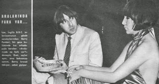 LEPİSKA SAÇ MODASI ARALARINDA FARK VAR... İşte, İngiliz BBC televizyonunun gözde sanatçılarından Barry Fantoni, bir gece kulübünde kız arkadaşıyla beraber. "Aralarında ne fark var ?" demeyin. Evet saçlar aynı, ama baksanıza canım, Barry kravat takıyor, ceket giyiyor...1966 |