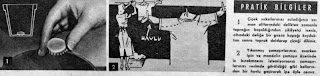 PRATİK BİLGİLER 1- Çiçek saksılarınızı suladığınız zaman altlarındaki delikten zamanla toprağın boşaldığından şikayetçi iseniz, altındaki deliğe bir gazoz kapağı koyduktan sonra toprak doldurup çiçeği dikiniz. 2- Yıkanmış çamaşırlarınızı asarken ipin ve mandalın çamaşır üzerinde iz bırakmasını istemiyorsanız çamaşırlarınızı resimde görüldüğü gibi kollarından bir havlu geçirerek ipe öyle asınız...1960 |