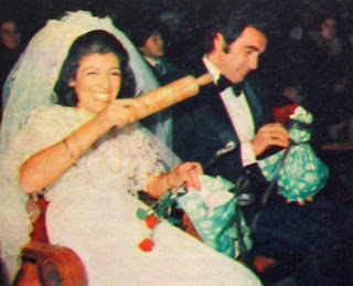 NİKAHTA SEVİMLİ ARKADAŞ SÜRPRİZİ Basın yayın genel müdürlüğünün iki mensubu Ayla Ezer ile Erol Yılmaz geçenlerde yapılan bir törenle iş arkadaşlığını hayat arkadaşlığına çevirdiler. Ama gençler nikahta defteri imzaladıktan sonra arkadaşlarının sunduğu hediye paketini açtıklarında geline kocaman bir oklava çıktığı görüldü. Ve gelin hanım bunu sallayarak konuklara gösterirken damat bey ise çaresiz bir şaşkınlıkla önüne bakmaktaydı...1975 |
