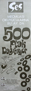 SES MECMUASI OKUYUCULARINA BU AY DA 500 Plak Dağıtıyor SeS 500 plak dağıtmaktadır. Günümüzün en sevilen ve en yeni plaklarını almak için SES okuyucusu olmak kafidir. SeS yerli ve yabancı sinemayı, tiyatro ve müzik dünyasını ayağınıza getiren Türkiye'nin yegane dergisidir...1968 |