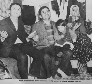 50.000 liranın talihlisi Ünal ailesi, Ziraat bankasından gelen mektubu okurken. Eşini hesap açması için teşvik eden Sare hanım ve ailenin diğer fertlerinin mutlulukları hepsinin yüzünden belli...1970 |