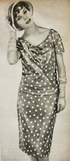 'nin sunduğu gül kurusu ipekli üzerine beyaz puanlı bir döpiyes modeli.