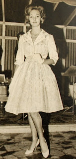 Maggy Rouff moda evinin İstanbul defilesinde sergilemiş olduğu kreasyonuna ait bir başka şık model. Desenli pamukludan tasarlanmış bu şömizye modelde Rouff'da diğer Paris'li modacılar gibi bu yılki kreasyonunda şömizye stiline rağbet ettiğini göstermekte...1959 |