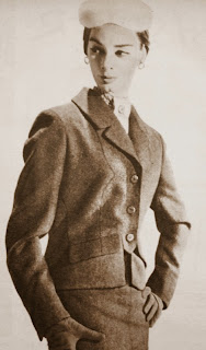 Kollar bol, etek dardır. Siyah beyaz jarse bluz üzerine tayyörün düğmesinden konulmuştur...1959