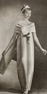 Turuncu şantuk kullanılarak hazırlanmış orijinal Nina Ricci imzası taşıyan bir tuvalet. Göğüs üzerinde başlayan geniş pili diz kapağına kadar inmektedir. Bu tipik ve orijinal tuvaletin yine önden başlayan ve sırtta uzayan biri uzun, diğeri ise kısa iki tane panosu mevcuttur...1959 |
