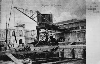 1900'lü yılların başlarına ait kartpostal o dönem Haydarpaşa limanı gümrüğünü göstermektedir. Magasins des Douanes Salut de port d' Haidar pacha, Constantinople. Editenr B. Kohn, Radikeny Haydarpaşa limanının 1910'lu yıllara ait bir görünümü. (Kadikeuy et Port de Haidar Pacha) |