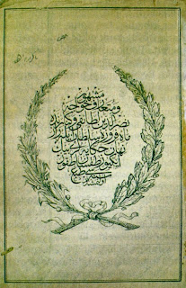 O dönem bu vesileyle taş baskı usulü ile basılmış 1299/1822 tarihli kitabın iç kapağı...