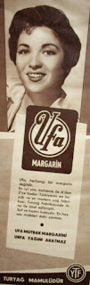 UFA MARGARİN Ufa, herhangi bir margarin değildir. En iyi cins malzeme ile A'dan Z'ye kadar Türkiye'nin en büyük ve en modern yağ fabrikası, Turyağ fabrikasında itina ile imal edilmiştir. Saf ve hazmı kolaydır. En hassas mideleri dahi yormaz. * UFA MUTBAK MARGARİNİ URFA YAĞINI ARATMAZ YTF TURYAĞ MAMULÜDÜR (1959) |