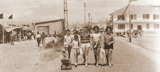 OTEL ÖNÜNDE Akşamları Nesim Palas'ın önü pek kalabalıktır. İşte arabaları ile gezmekten otellerine dönen iki hanım...1959 |