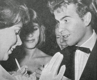 GENÇ KIZLARIN FAVORİSİ 9. Berlin film festivalinin anlamlı 9. gece, gecesinin tertip edildiği "Palais Am Funkturm"un bir diğer misafiri İngiliz sinemasını temsil eden "Kaplan Körfezi" adlı zabıta filminin baş rolünü Horst Buchholz oynuyordu. Aktör imza meraklısı genç kızlardan o gece yakasını kurtaramadı...1959 |
