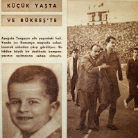 'in 6 yaşındaki hali, sağda ise Romanya maçında sakatlanarak sahadan çıkışı görülüyor. Bu hadise büyük bir dedikodu kampanyasının açılmasına sebep olmuştu...1959