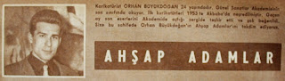 Karikatürist Orhan Büyükdoğan 24 yaşındadır. Güzel sanatlar akademisinin son sınıfında okuyor. İlk karikatürleri 1953'de Akbaba'da neşredilmiştir. Geçen ay son eserlerini Akademide açtığı sergide teşhir etti ve çok beğenildi. Size bu sahifede Orhan Büyükdoğan'ın Ahşap Adamlarını takdim ediyoruz...1959 Karikatürist ilerleyen dönemlerde Hayat dergisinde "Altın saçlı kız" ve "1001 gece masalları, Alaaddin'in lambası" adlı karikatür serilerini yayınlamıştır... |