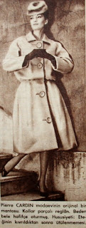 Kollar parçalı reglan. Beden bele hafifçe oturmuş. Hususiyeti : Eteğinin kıvrıldıktan sonra ütü yapılamaması...1959