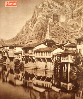 Hayat Mecmuasının arka kapağı olarak "Memleket manzaraları 5" adıyla yayınlanmış Amasya'ya ait bir görünüm. Açıklaması şu şekilde : Amasya, çok zengin ve eski bir geçmişi olan bir şehrimizdir. Yeşilırmak'ın kayalar arasında açtığı dar boğazın sağ ve sol kıyılarında kurulmuştur. Sağ kıyısında bulunan kayalığa Ferhat dağı adı verilir. "Ferhat ile Şirin" efsanesinin burada geçtiği rivayet edilir. Malazgirt meydan muharebesinden sonra Danişmendliler devleti kurucusu Melik Danişmend Gazi tarafından fethedilmiştir. Fatih Sultan Mehmet burada sancak beyi olarak bulunmuş, Yavuz Sultan Selim burada doğmuş, Ziya Paşa burada mutasarrıflık yapmış, Mustafa Kemal Atatürk istiklal mücadelesinin esaslarını ihtiva eden tarihi kararı burada almıştır...1959 |