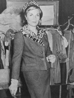 Yünlü bir tayyör. Yakasına bu yıl çok moda olan kaplan kürkü konmuştur. Etek dar, ceketin beli ise Paris modellerinde olduğu gibi hafifçe oturmuştur... |